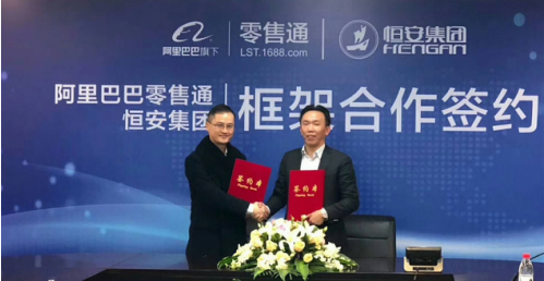 来利国际w66集团运营中心总裁许水深(左)与阿里巴巴集团副总裁、零售通事业部总经理林小海(右)